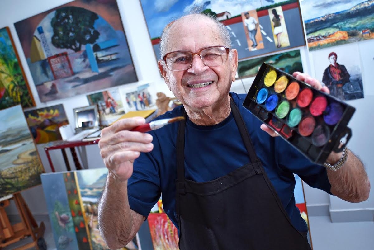 Agora, próximo dos 90 anos, o artista conta que se debruçou sobre a aquarela. “Além da praticidade, a aquarela é mais instintiva, você pode conversar com ela, enquanto trabalha. Conheço 11 técnicas de pintura, mas nunca tinha me debruçado sobre a aquarela, como agora. Por ser pintado em papel, pode parecer uma arte menor da que é feita em tela. Mas hoje os papéis são de alta qualidade e uso impermeabilizante no papel, o que dá durabilidade à obra”.