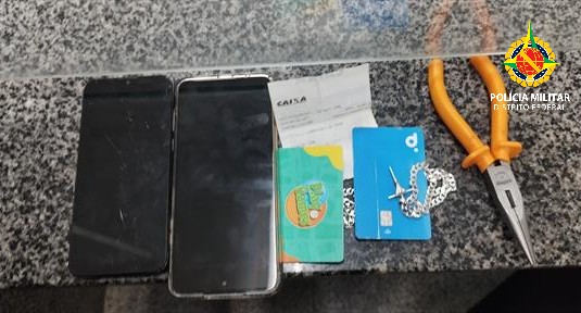 Com a dupla, foram apreendidos um alicate de bico e aparelhos celulares. Nenhum outro material ilícito foi localizado durante a busca pessoal.