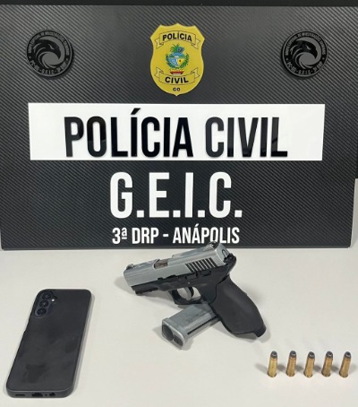A perseguição terminou no Setor Residencial Gabriela, onde o suspeito caiu na garagem ao tentar entrar em casa e acabou contido. No local, os agentes apreenderam um simulacro de pistola parecido com o usado no crime e munições de calibre .38.