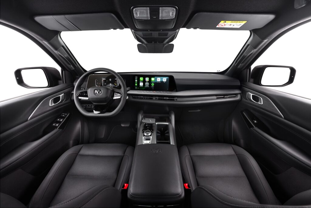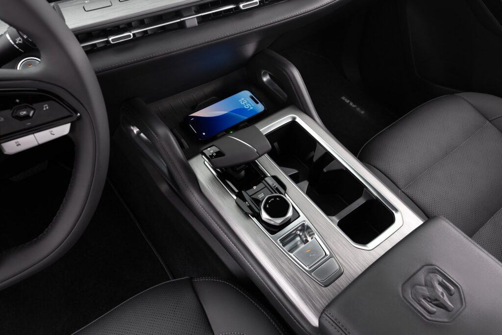 Outro destaque do interior da nova Ram Dakota é o console central elevado, com carregador por indução para celular, entradas USB incluindo do tipo C, de carregamento rápido, e porta- objetos na parte inferior e no apoia-braço. No quesito segurança, a Ram Dakota é equipada com seis airbags e ampla suíte de equipamentos para condução semiautônoma.