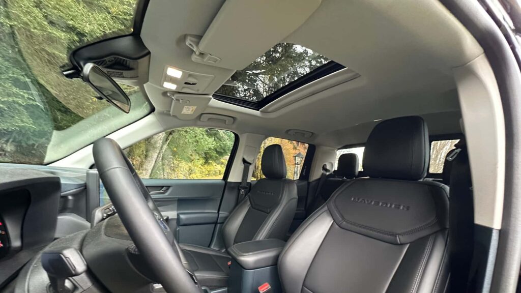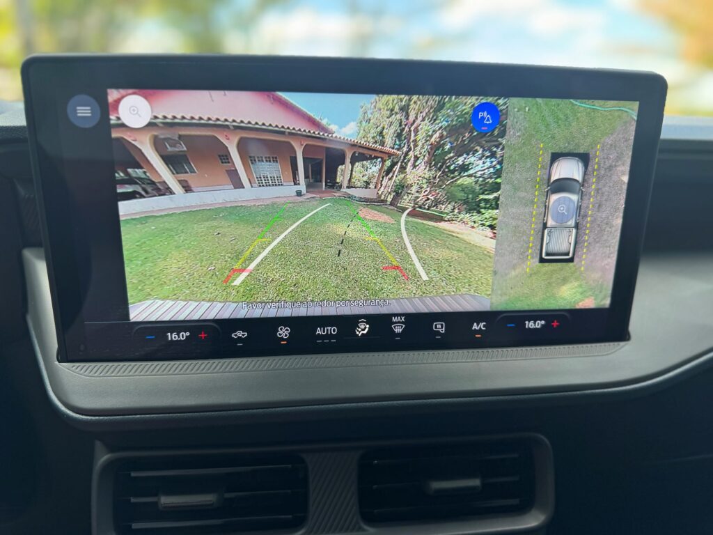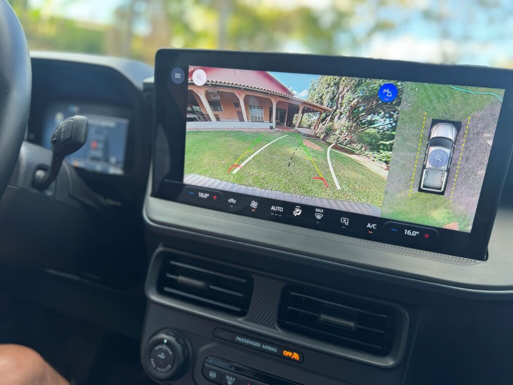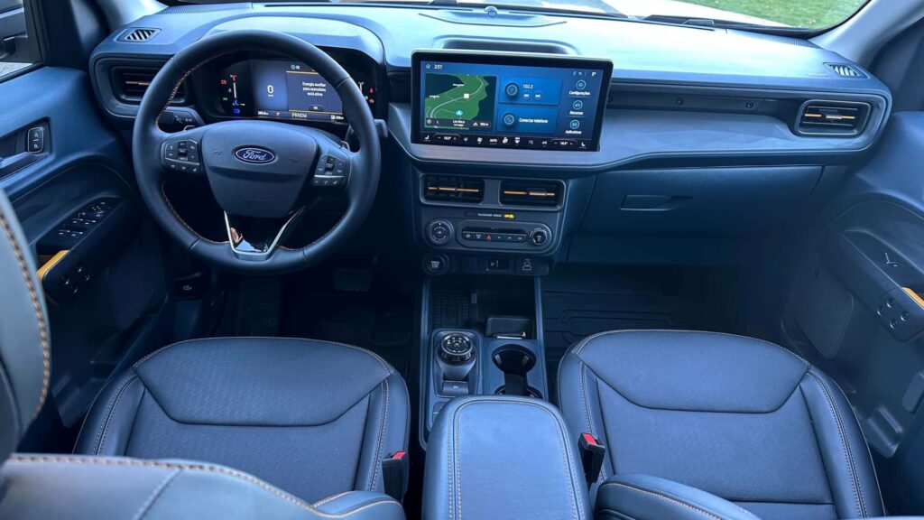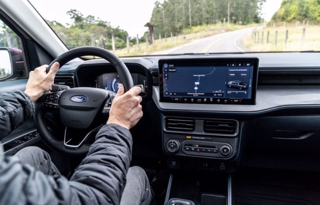 A antiga multimídia de 7” sai para a entrada do moderno sistema Sync 4, com tela de 13,2” de fácil operação e intuitiva. Ele é conectado com o Android Auto e Apple CarPlay sem fio. Pela multimídia opera também o ar-condicionado digital dualzone. A versão Lariat Black traz ainda GPS nativo, porta-objetos sob o assento traseiro, teto-solar com abertura elétrica.