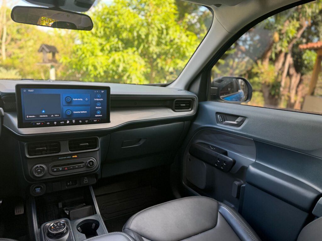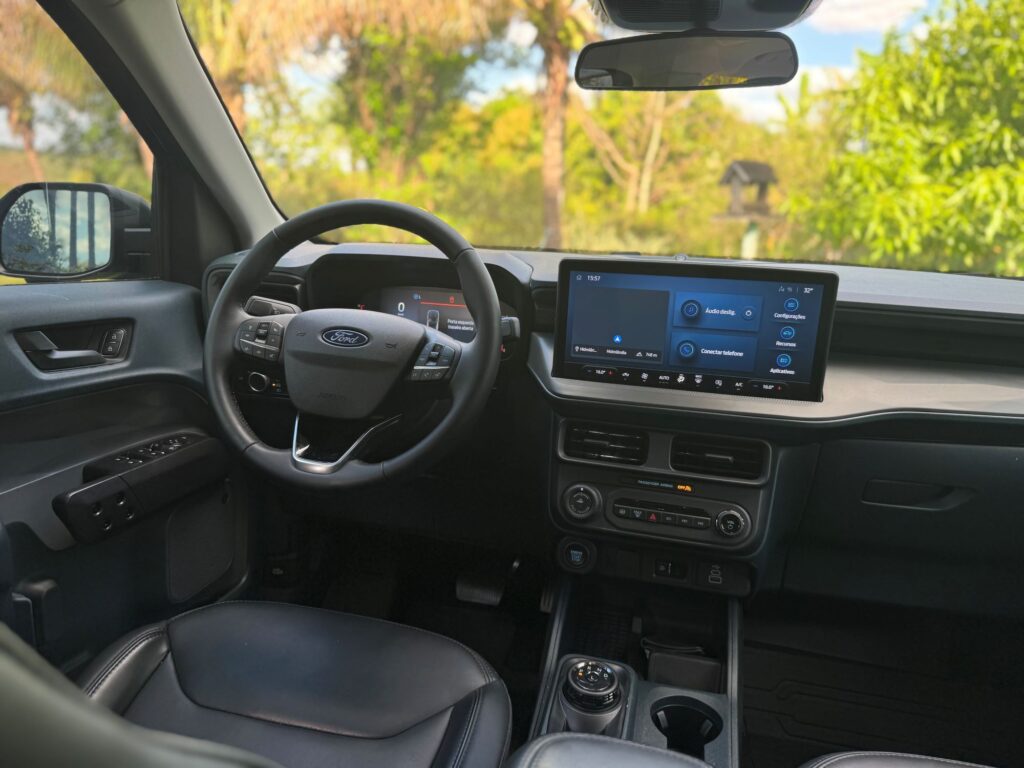 Os retoques visuais deixaram a Maverick 2026 mais atraente, mas o seu reposicionamento faz a diferença no custo/benefício. Um exemplo é a versão testada Lariat Black com seu preço de R$ 219.900 contra os R$ 239.900 da antecessora. Simplesmente R$ 20 mil de redução, mesmo com todos custos das mudanças na nova versão. As atualizações seguem as alterações feitas na picape vendida nos Estados Unidos, como a dianteira ostentando novos faróis, agora menores e em forma de vírgula. A Black traz novo quadro de instrumentos digital, uma central multimídia moderna e carregador por indução, seguindo o padrão dos demais modelos da marca comercializados no Brasil. O antigo quadro de instrumentos com tela pequena de TFT e mostradores analógicos dão lugar um novo display de 8” totalmente configurável.