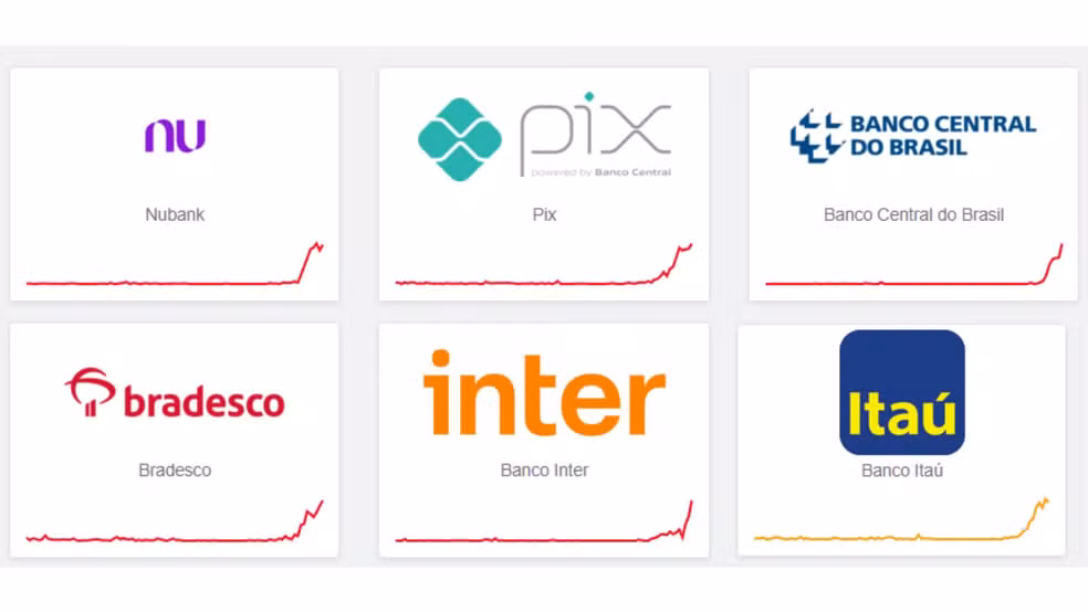 O site Downdetector registrou picos de reclamações a partir do fim da manhã. O Itaú liderou com cerca de 1.200 registros às 14h30, seguido por Caixa (120), Nubank (160) e Bradesco (85). A maioria dos usuários reportou problemas com pagamento de boletos.