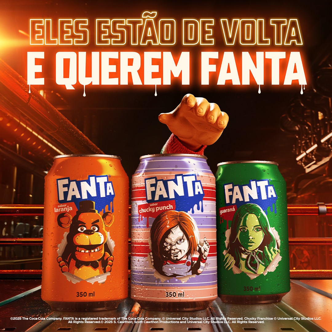 A parceria traz os ícones do horror Chucky (da franquia ‘Brinquedo Assassino’), Freddy Fazbear (de ‘Five Night at Freddy’s 2’) e M3gan (de ‘M3GAN 2.0’), unidos ao redor de um desejo irresistível em comum: Fanta®! Em todo o mundo, os fãs encontrarão os personagens clássicos e modernos do Halloween na caça por Fanta, com uma série de experiências até a chegada do Halloween. Eles podem vir de mundos diferentes, mas, desta vez, compartilham o mesmo desejo – Eles Querem Fanta®.