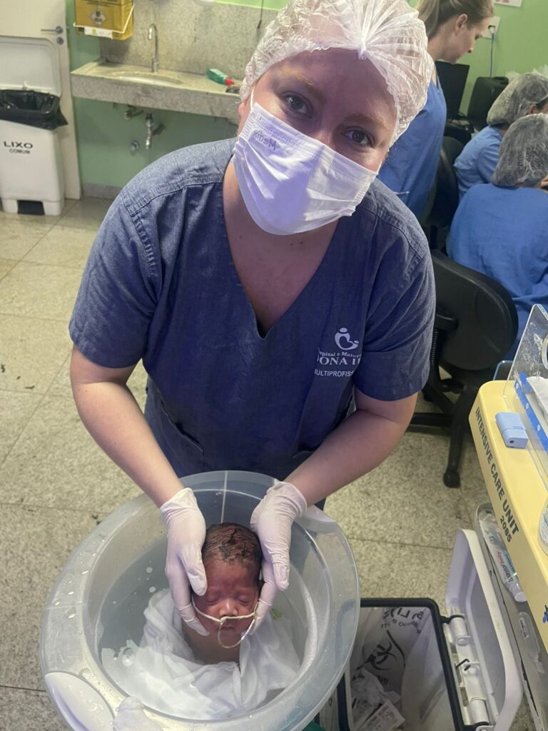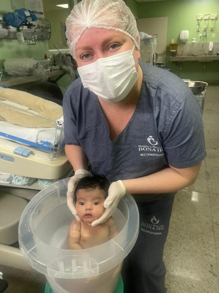 O Hospital e Maternidade Dona Iris (HMDI) tem adotado práticas cada vez mais humanizadas no cuidado com os recém-nascidos. Uma delas é o banho de ofurô, também conhecido como hidroterapia em balde. A técnica é realizada por profissionais de saúde, em sua maioria fisioterapeutas, e busca recriar as sensações do ambiente intrauterino, promovendo conforto e bem-estar aos bebês.